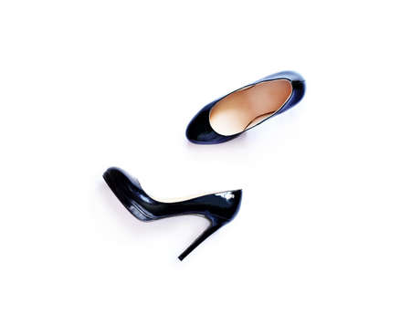 Black high-heeled shoes. Womens shoes with heels. A pair of womens Black patent leather shoes on a white background