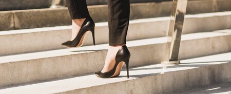 Closeup woman have pain in leg because wearing highheels. Concept about carrer and business