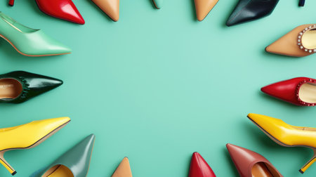Multicolored womens shoes on a pedestal. 3D rendering illustration.