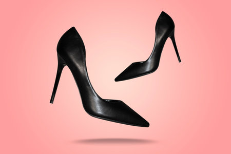 An AI generated illustration of a pair of beautiful black women's heels on a pink background