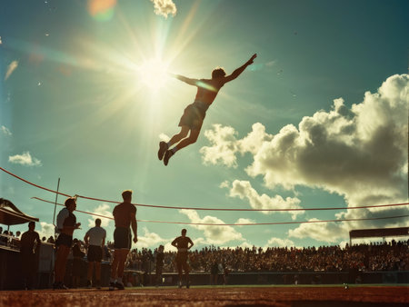 Athlete high jumping during a track and field competition at a stadium