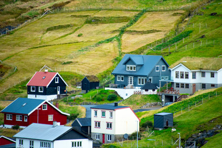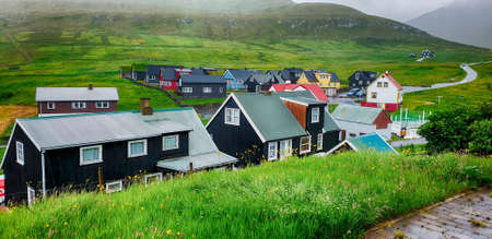 Scandinavian colorful houses. Gjogv village. Eysturoy island, Faroe Islands, Denmark.