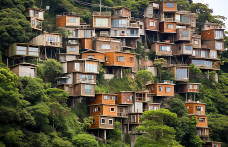 Inclined houses. Created with Generative AI technology