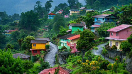 vibrant colors of houses and the lush green of the landscape generative ai
