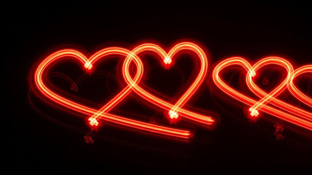Abstract glowing red heart shapes created with light painting on a dark background.