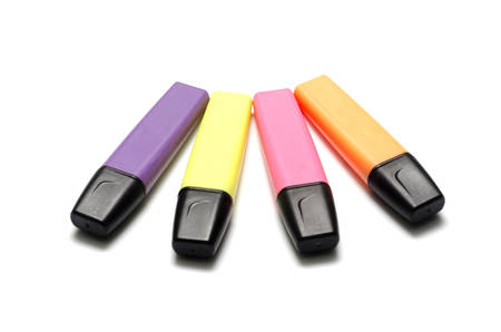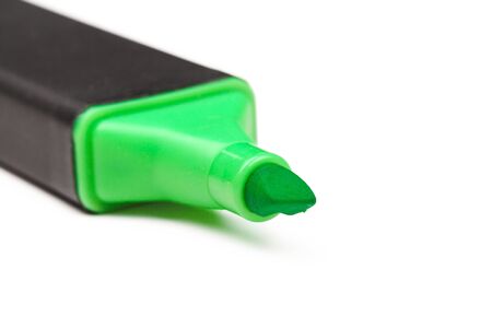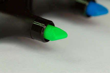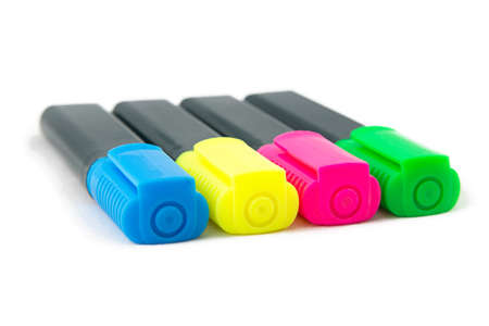 Colorful marker pen on white background. Multi-colored highlighter, close-up