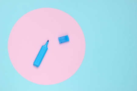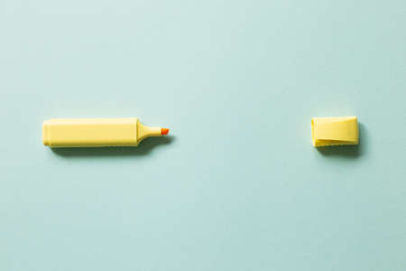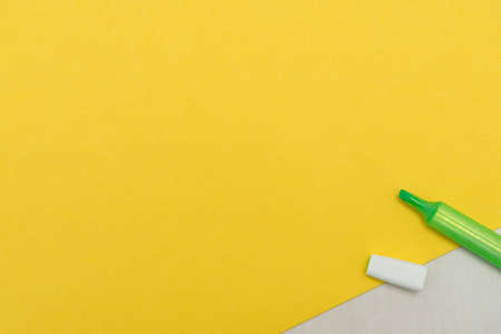 Bright felt-tip pen of neon color on yellow background with a place for text or inscription. Minimal design