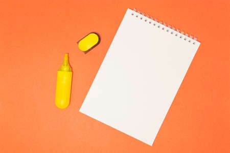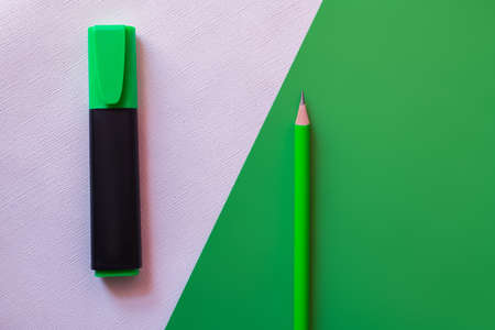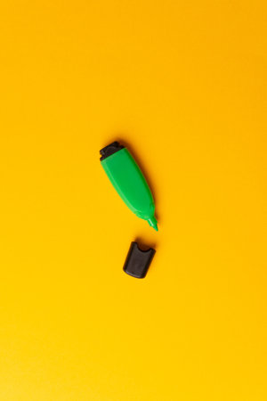 Bright felt-tip pen of neon color on yellow background with a place for text or inscription. Minimal design