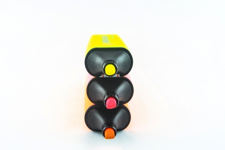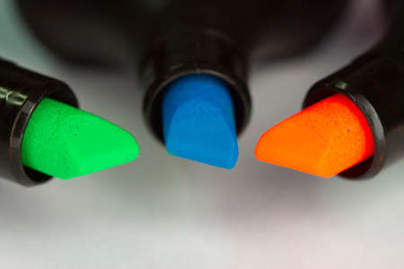 Colorful marker pen on white background. Multi-colored highlighter, close-up
