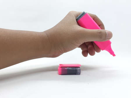 Yellow highlighter pen on a white background Yellow highlighter pen Thailand
