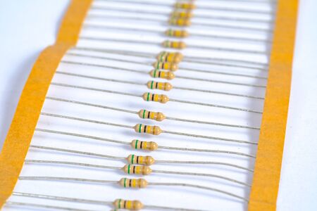 Resistors on a white background closeup, focus on foreground
