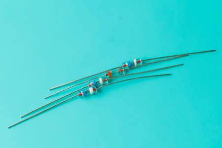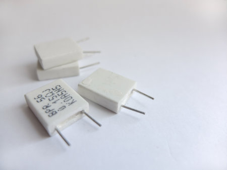 Ceramic resistors on a white background. Electronic components for electronic devices.