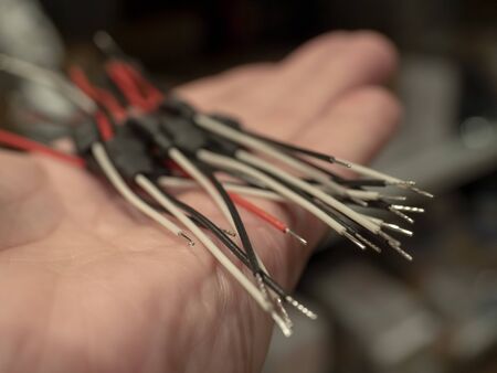Electrical wiring neatly in the hand of man