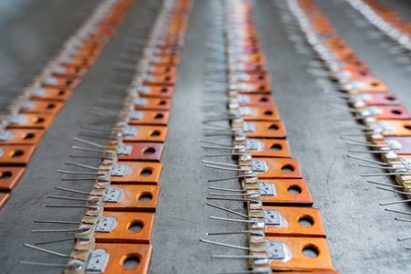 A selective focus of the PC capacitors under the lights with a blurry background