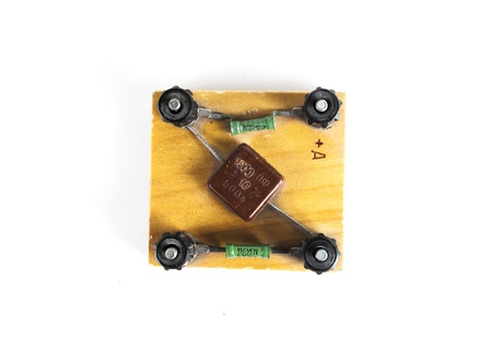 old device for connecting a resistor and a capacitor for physics lessons isolated on white background