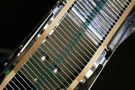 Electronic industry. Connection diagram of resistors in the control cabinet. Close-up.
