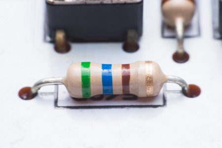 Closeup electronic hardware .Resistor on the white circuit board
