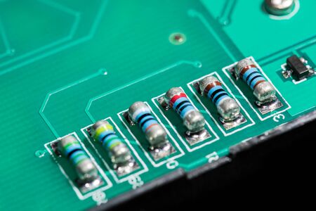 Fragment of the circuit board with mounted resistors