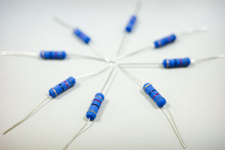 Radial Arrangement of Blue Electronic Resistors on White Background