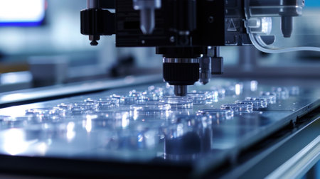 high-tech machinery for lens assembly, created with generative ai