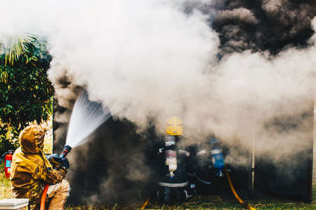 Firefighters fighting fire, Firefighters training
