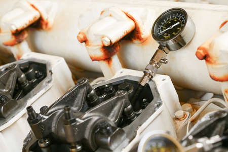 Technician performs adjusting Rocker arm of exhaust valve and intake valve, Pressure tested for cylinder of the engine. Checked clearance or gap between the end of valve and rocker arm.
