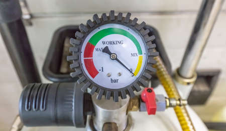 A pressure gauge showing the water pressure in the pipeline system in a private house.