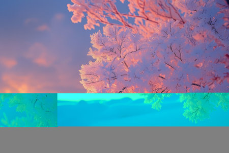 A stunning winter scene featuring a frosted pine tree standing alone against a pastel sky, capturing the essence of tranquility and natural beauty in a serene landscape.