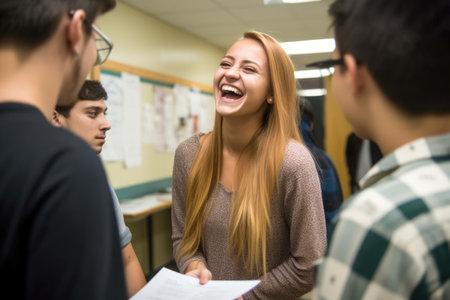Happy school students, great moments and memories, classroom, enthusiasm for learning, celebrating the journey of education filled with laughter and friendship