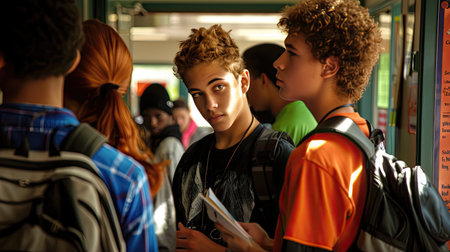 young high school student together with other students in background