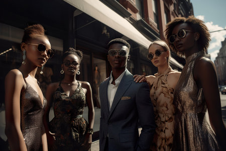 A group of african american fashion and stylish models posing on streets during sunlight. Generative Ai