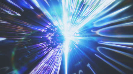 Light tunnel with speed effect moving through a star field. Ideal for technology, science, and futuristic concepts.