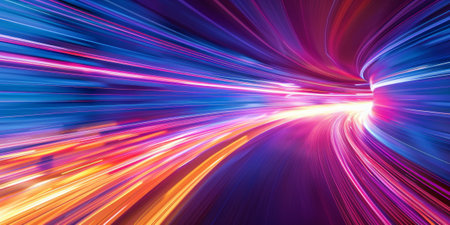 Vibrant abstract light trails create a dynamic feeling of motion in a colorful background