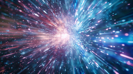 Experience a mesmerizing abstract light burst with vibrant colors, perfect for high-tech and sci-fi visuals. This dynamic background enhances creativity.