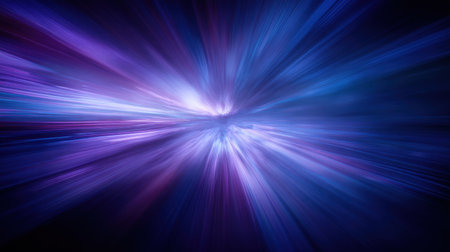 Abstract, blurred, linear pattern of purple and blue light beams radiating from center