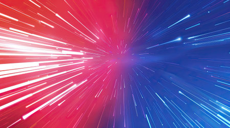 Experience a captivating visual of dynamic light bursts in red and blue, symbolizing energy and speed in an abstract motion format, perfect for any creative project.