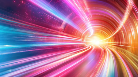 Dynamic abstract light tunnel showcasing vibrant colors and motion blur, creating a sense of speed and futuristic energy, perfect for technology and design themes.