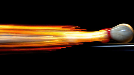 A captivating image of a matchstick in motion, surrounded by vibrant streaks of light and color on a black background, embodying speed and energy.