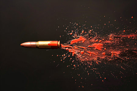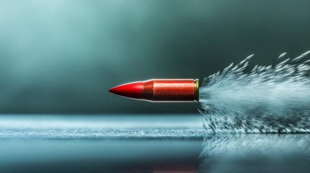 An impressive close-up image of a red bullet in motion, capturing the speed and energy with vapor trails that illustrate the power of firearms and their intricate design.