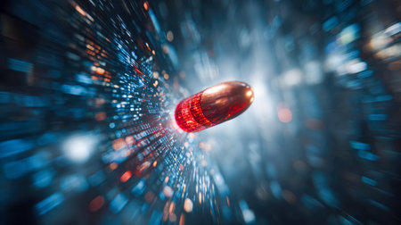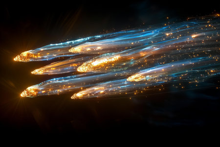 Captivating image of a bullet in motion, showcasing a stunning fiery trail and sparkling effects that emphasize speed and power in a creative visual concept.