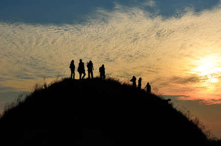 Silhouette people sunset at Khao chang puek mountain, Kanchanaburi, Thailand