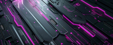 A captivating close-up of a futuristic electronic circuit showcasing vibrant colors and intricate details, perfect for technology-themed projects or designs.