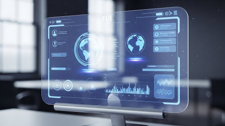 High-tech digital dashboard showcasing data analytics and visual insights for enhanced interaction and user engagement in a modern workspace environment.