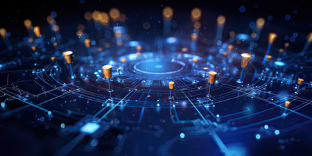 Futuristic Digital Circuit Board with Glowing Nodes and Complex Connections in Neon Colors