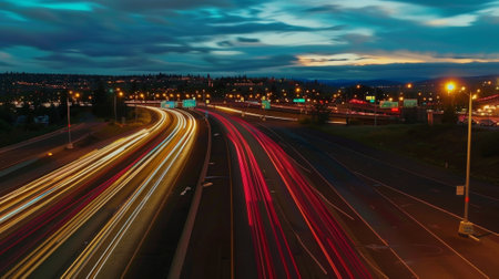 The surreal blur of different colored light trails intertwine and overlap showcasing the nonstop activity and energy of a major highspeed freeway