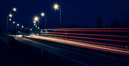Night traffic on the highway in the city. Long exposure photo.