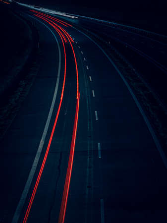car light trails on the road at night. long exposure photo.