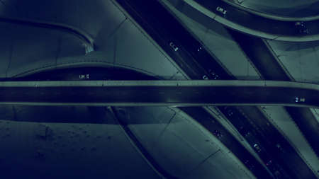 Aerial view elevated road traffic junctions, Modern construction design traffic ways traffic jams, Road interchange or highway intersection with busy urban traffic Junction network of transportation.