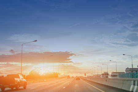 traffic on the highway at sunset in the city of Kuala Lumpur in Malaysia.