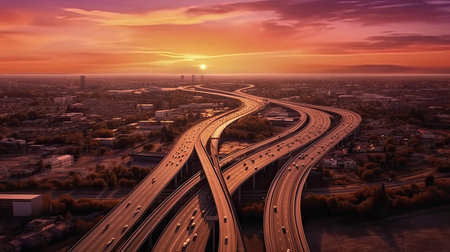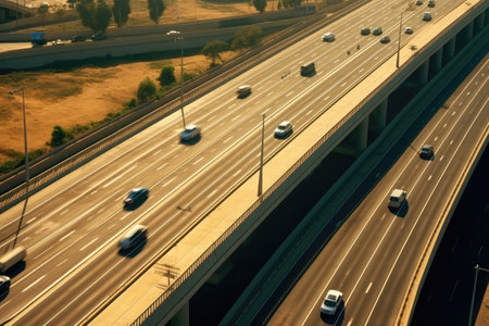 Busy expressway overhead view with urban traffic, vital infrastructure in megacity